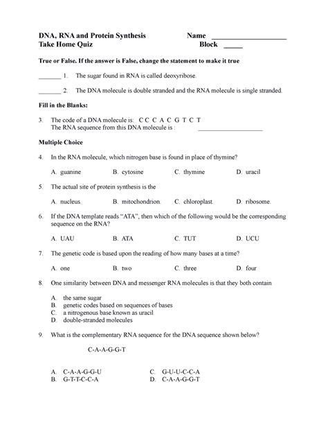 Download Rna And Protein Synthesis Test B Answer Epub